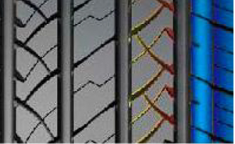增加胎面的咬合邊,提高剎車和濕地安全性能。切割花紋防止花紋塊在剎車時發生卷邊效應,增大接地面積。