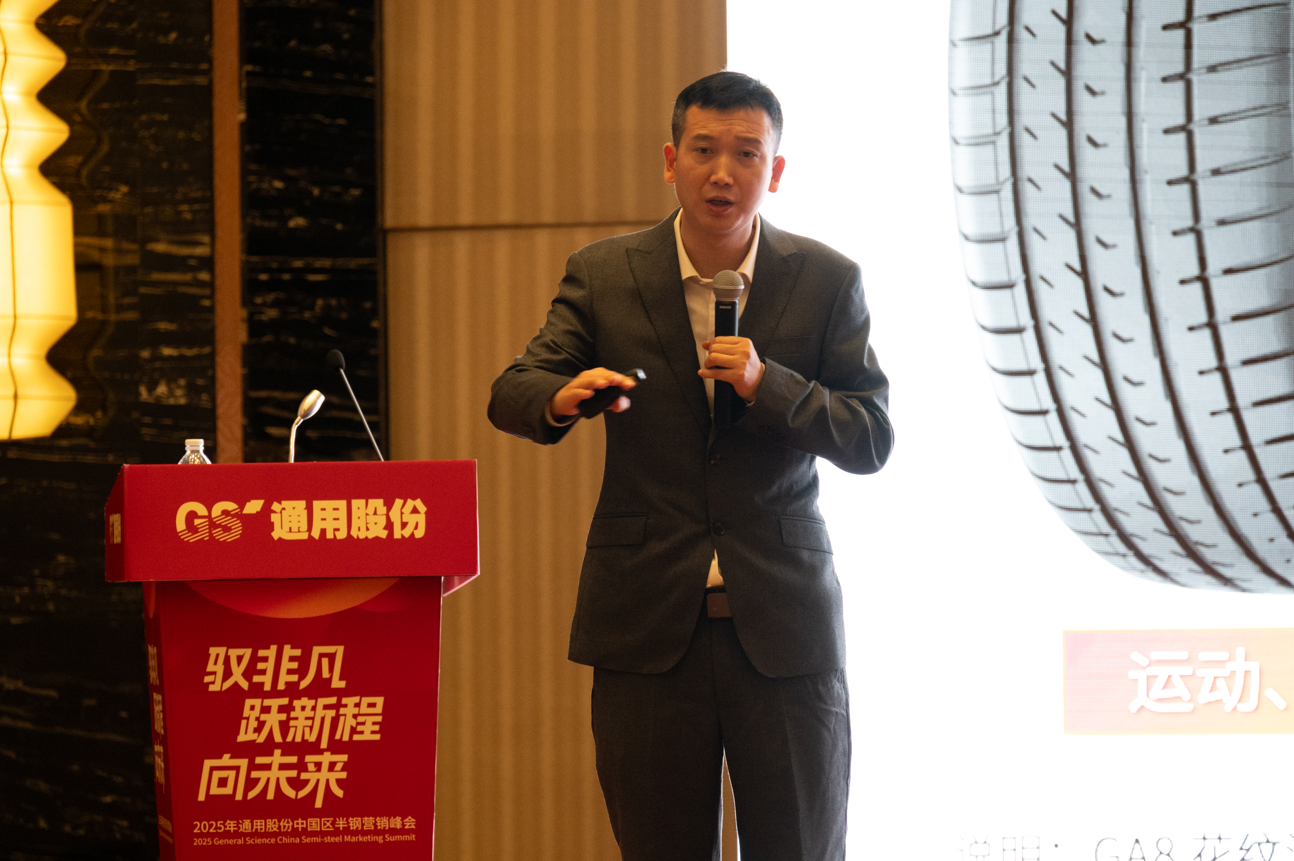 鄔總?cè)婵偨Y(jié)了中國區(qū)半鋼板塊2024年的業(yè)績表現(xiàn),并深入剖析了市場競爭格局。他指出,盡管行業(yè)面臨多重挑戰(zhàn),但全球消費(fèi)降級(jí)、汽車“以舊換新”等政策也帶來了國產(chǎn)輪胎品牌新的市場機(jī)遇。他發(fā)布了2025年半鋼板塊的經(jīng)營戰(zhàn)略,強(qiáng)調(diào)以產(chǎn)品、營銷、服務(wù)為核心,鼓勵(lì)經(jīng)銷商把握機(jī)遇,突破發(fā)展瓶頸,搶占市場主動(dòng)權(quán)。